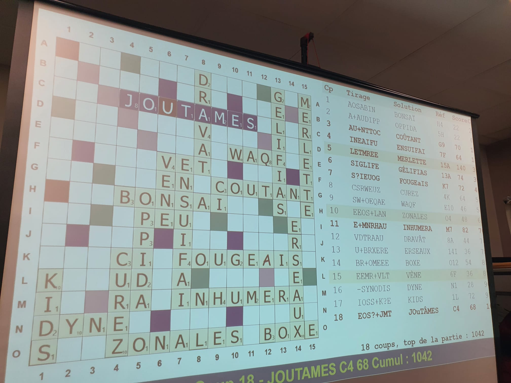 A la P1, au 8ème coup, on pose ORNEZ 50 sur le S de CHNOUFS formant OS.