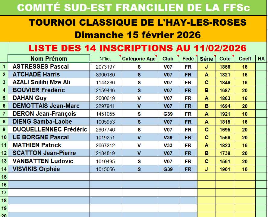 48 inscrits au 11/02 : L'Haÿ-les-Roses (18) / Soignolles (30)